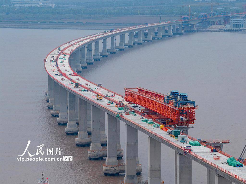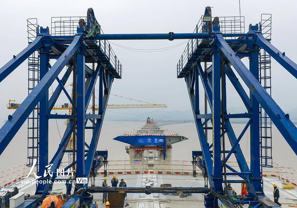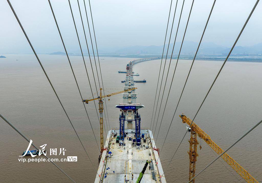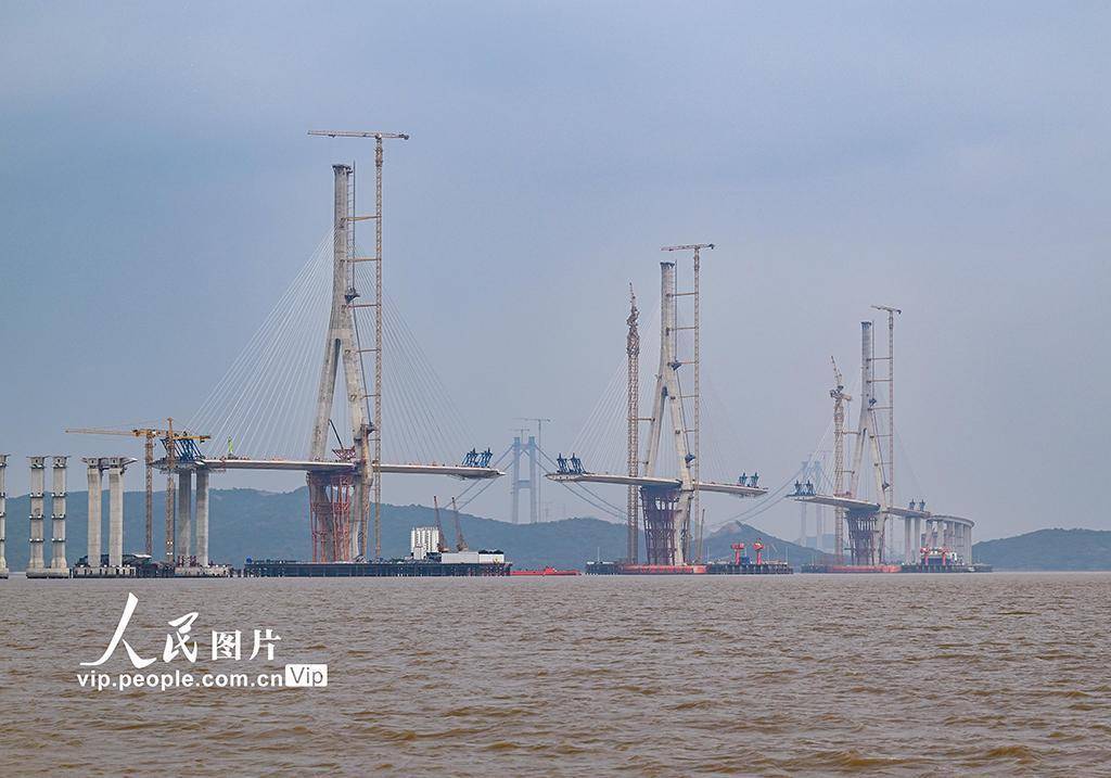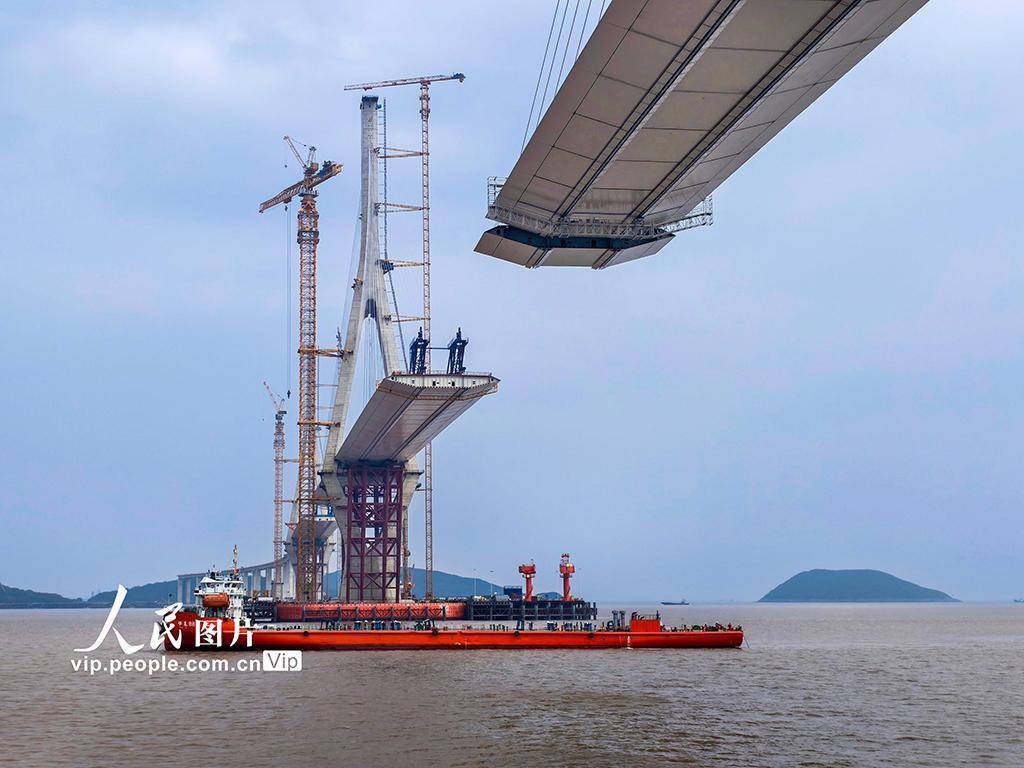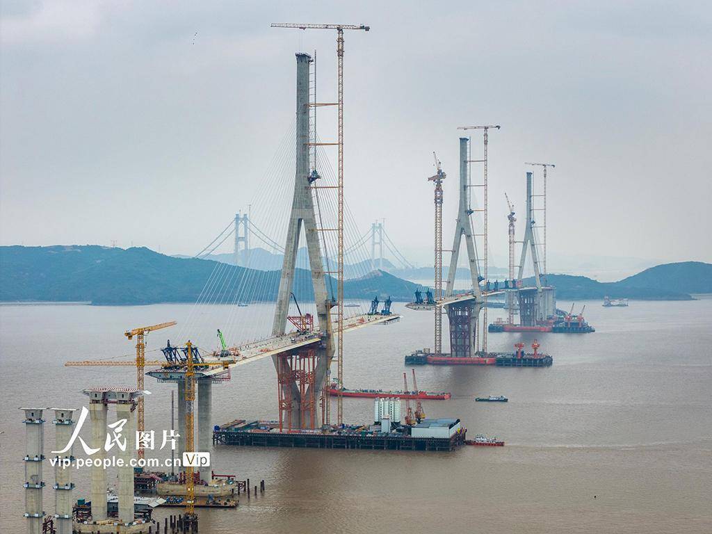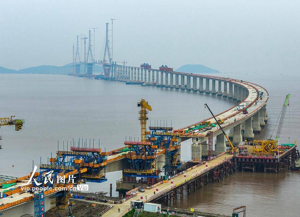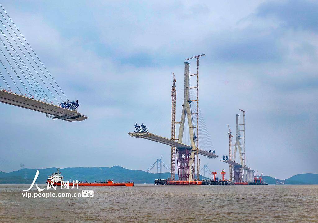 该大桥建成后,将有效促进六横岛、佛渡岛、梅山岛三岛的港区与产业联动,对推动甬舟一体化发展具有重要意义。胡学军摄(人民图片网)